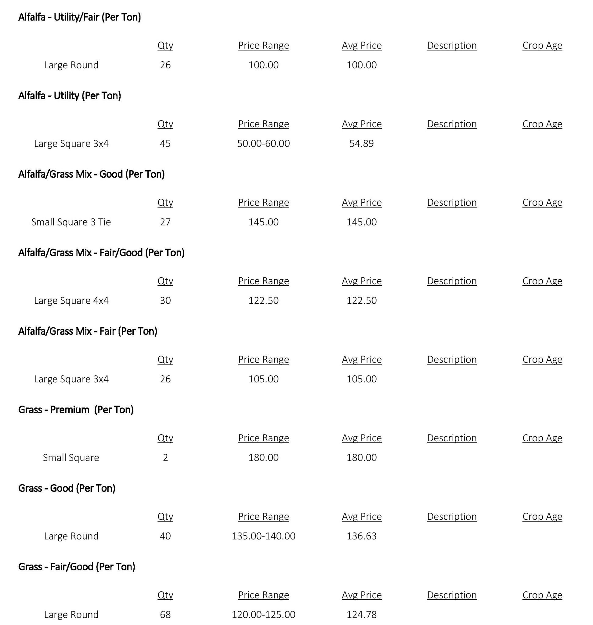 Folks report they have received plenty of inquiring phone calls. Sales slowed a bit this past week, however, and now that we are pretty much guaranteed a first cutting, there seems to be a softer undertone to pricing. Prior to the rain, folks kept busy with field work, applying fertilizer, and putting down anhydrous. Post rain, pastures have been greening up but still not green enough to feed livestock. There has been talk that a high percentage of hay producer’s hay ground will go to corn and beans.
