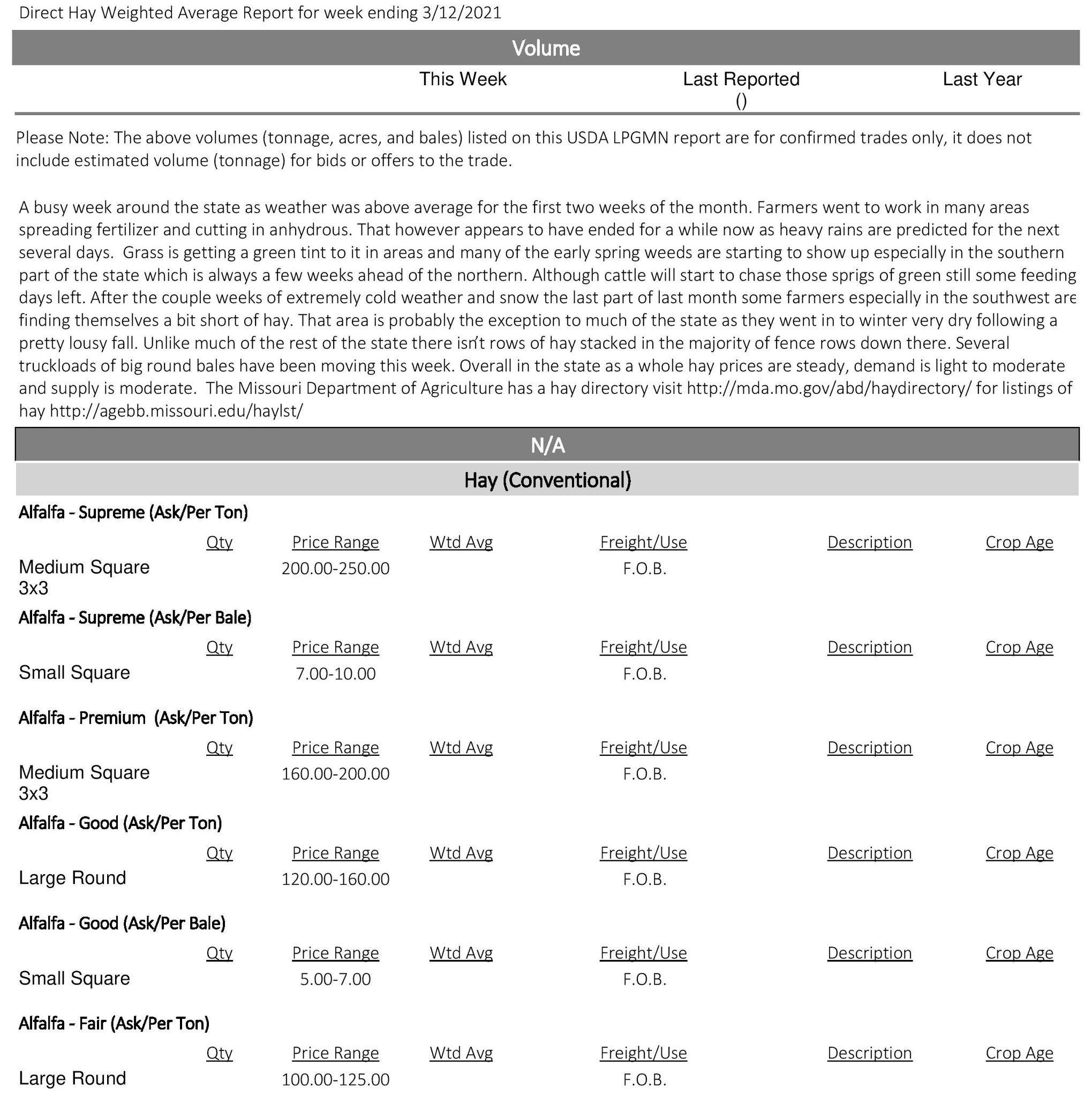 Missouri Direct Hay Report