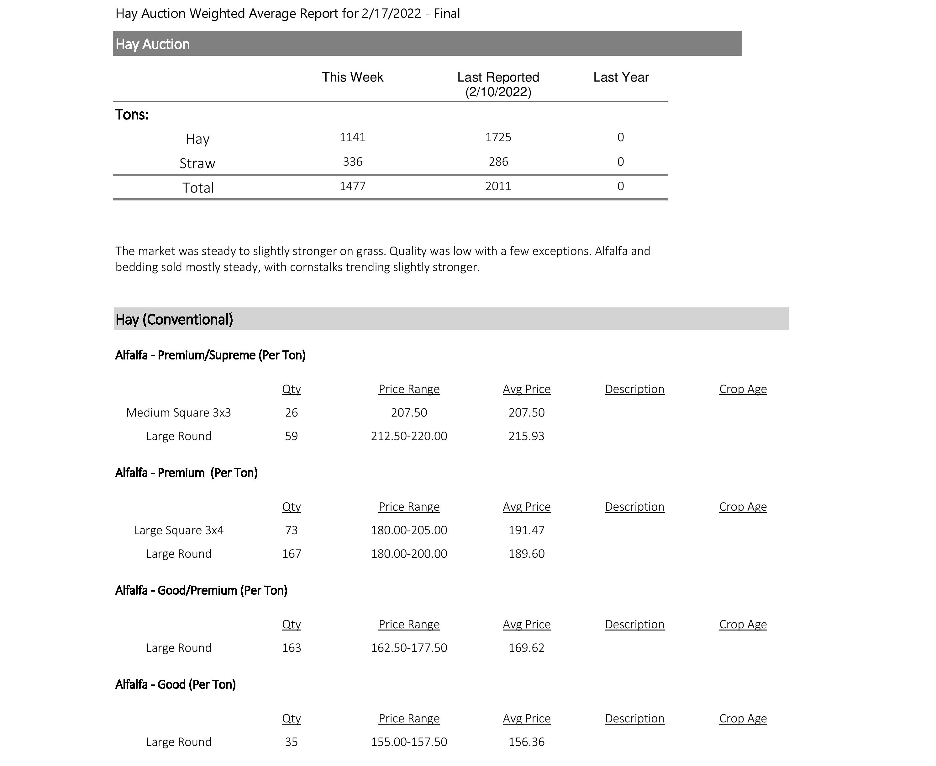 Rock Valley Hay Auction (Thur) - Rock Valley, IA