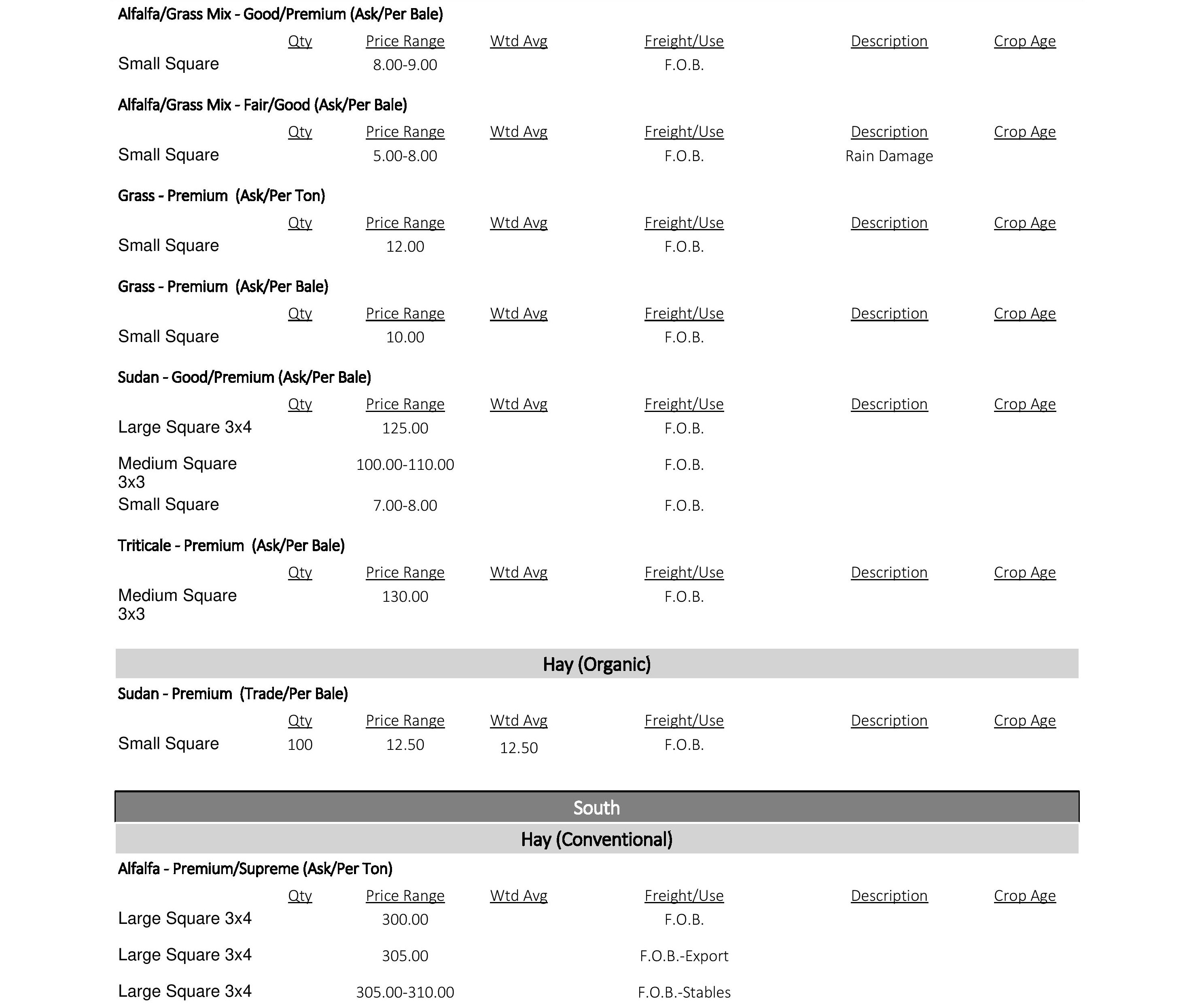 In South Dakota, prices for all hay types is firm. Good demand for all types and quantities of hay. Some calves are being weaned and sent to market, but overall pasture is adequate.