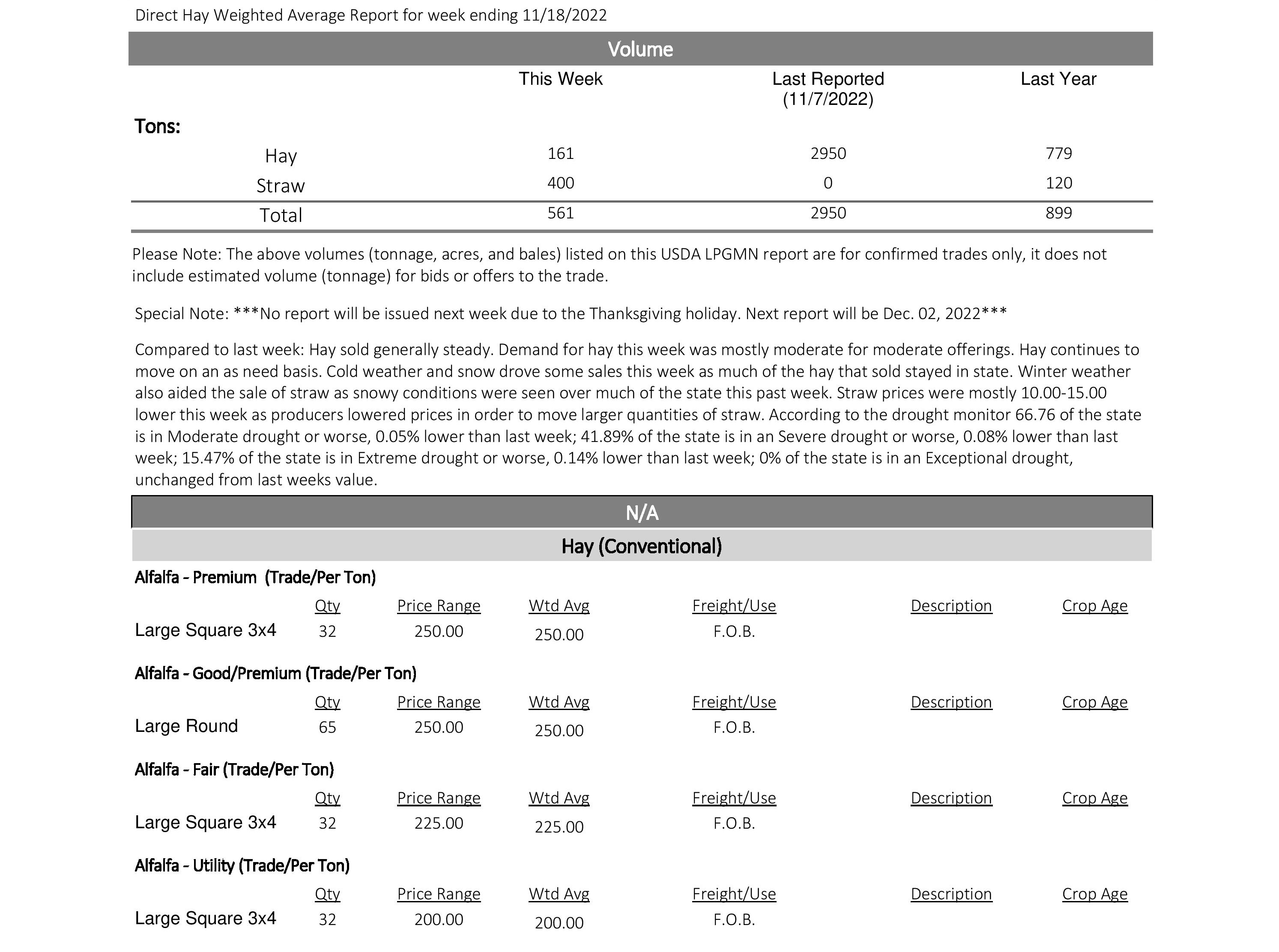 New Mexico—Hay reports have ceased for 2022. Next report will be released April 2023.