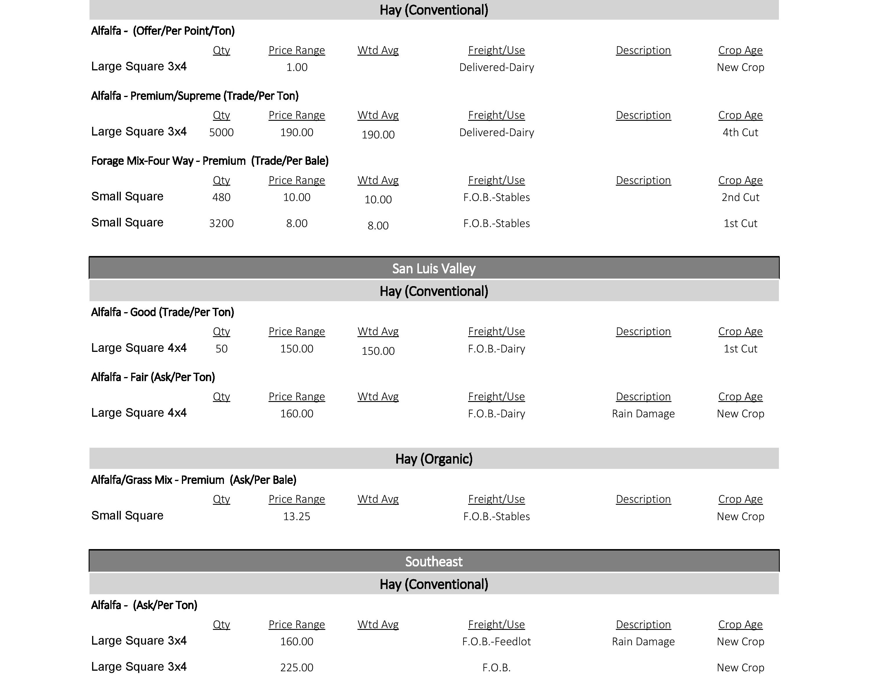 Colorado Direct Hay Report